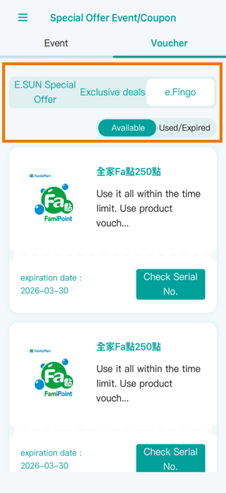 E.SUN Mobile Banking App: Coupon