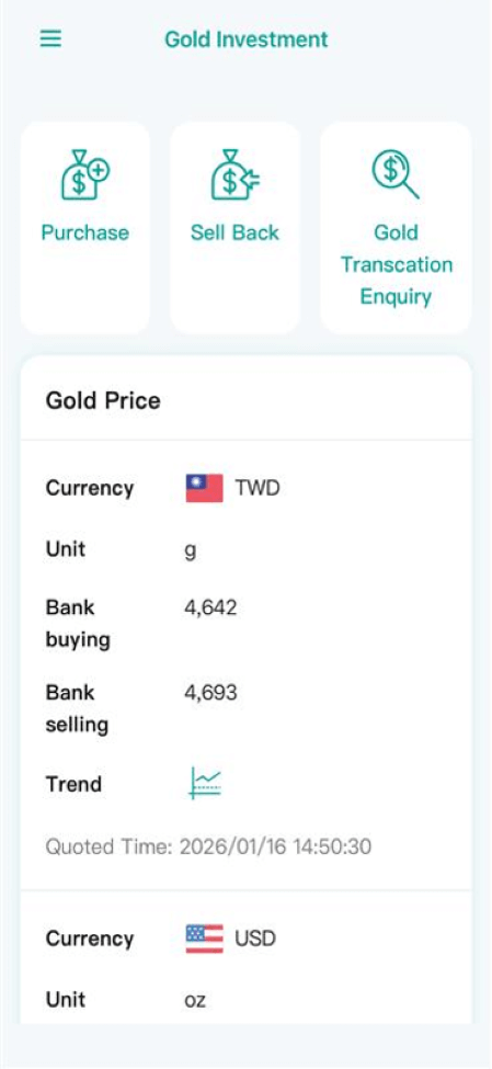 E.SUN Mobile Banking App: Gold Trading Account