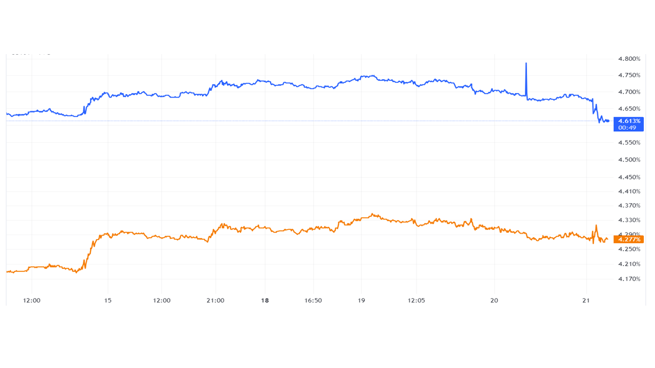 ▲ 資料來源:美國公債殖利率2年期(上)/10年期(下);TradingView(2024/03/21),玉山整理