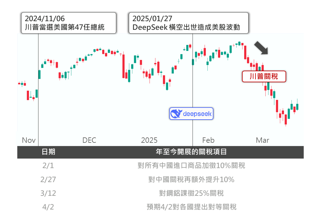 隨著2025年川普展開他的第二任期,股市初期雖有短暫蜜月期,但投資人很快意識到,面對經濟逆風,川普並未放緩關稅戰的腳步,導致全球股市正面臨修正陣痛期。然而,聯準會可能加速放寬貨幣政策,加上人工智慧發展的普及、新興科技的崛起,市場上仍富有著投資機會。