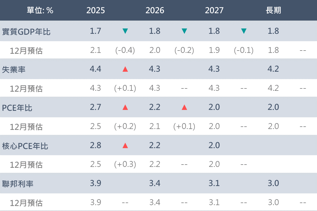 ▲ Fed經濟預估摘要(SEP)及其上下修變動