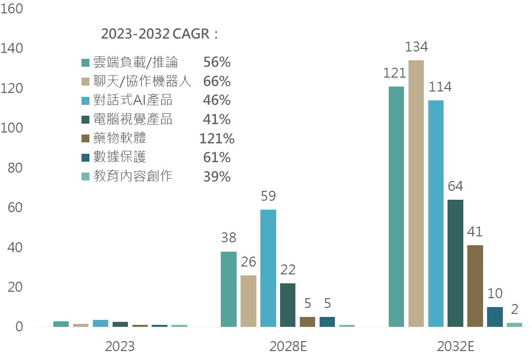 然而,至今的發展僅代表AI發展週期的開始,AI在未來仍有廣闊的發展前景。對比iPhone生態系的發展軌跡,AI產業初期市場重點在於硬體布局,隨著應用端普及,軟體及推論應用將逐步成為產業發展核心。巴克萊研究指出,到二O二八年整體推論市場將持續供不應求;而應用當中,能幫助使用者代為決策並執行的AI Agent將有望成為2025年的焦點,進一步拓展多面向的創新應用,為各產業帶來龐大商機與變革。