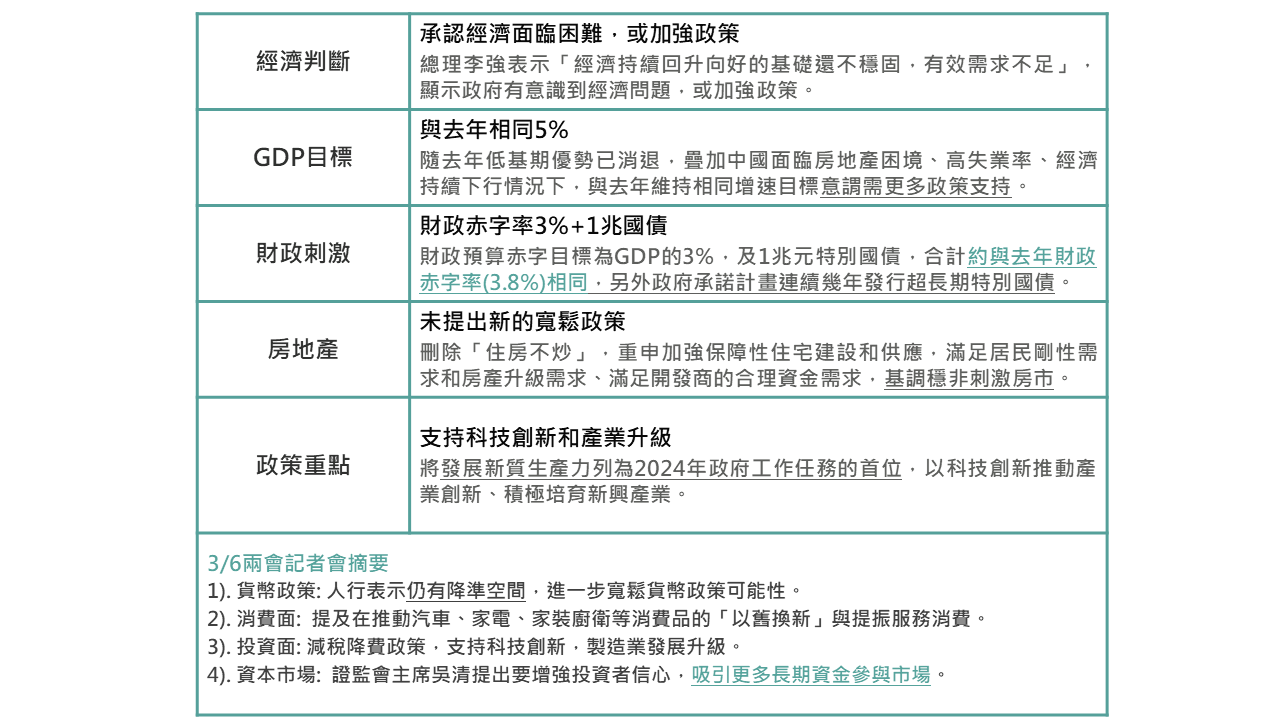 ▲ 人大會議摘要;資料來源:Bloomberg(2024/03/06),玉山整理