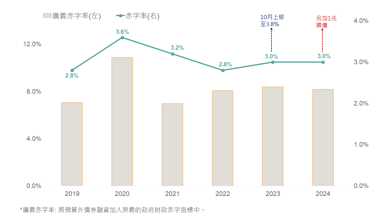▲ 政府財政赤字率目標;資料來源:野村(2024/03/05),玉山整理