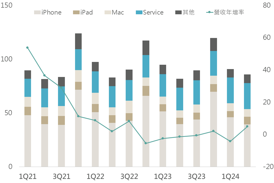 蘋果於盤後公布財報,營收/EPS分別為857.77億美元/1.4美元,雙雙高於市場預期(844.6億美元/1.35美元);產品銷售而言,iPhone營收393億美元,雖年減0.9%,但仍超過預期之388.1億美元;iPad銷售表現優異,年增23.7%至71.62億美元,遠超預期的66.1億美元。另外,服務營收亦大幅成長14.1%,為242.1億美元,優於市場預期的239.6億美元。