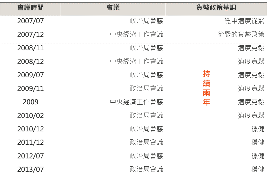 貨幣政策論述上較先前更為寬鬆,回顧今年4、7月的政治局會議上,措辭皆是「實施好穩健的貨幣政策」,後續到了9月會議轉為「加大貨幣政策求調節 力度」,進一步到現在提到更積極的「適度寬鬆的貨幣政策」。