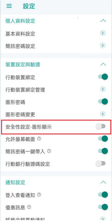 • 設定前,請先綁定「行動裝置」【詳見第1題】及設定圖形密碼【詳見第14題】
