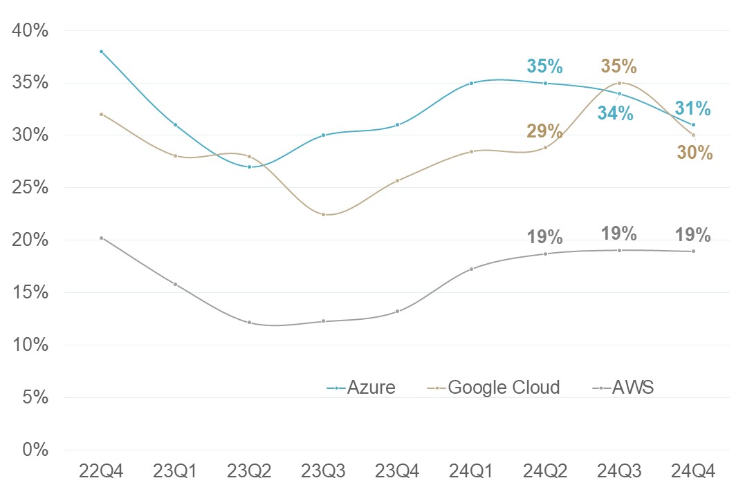 ▲ 主要CSP廠雲端業務營收年增率