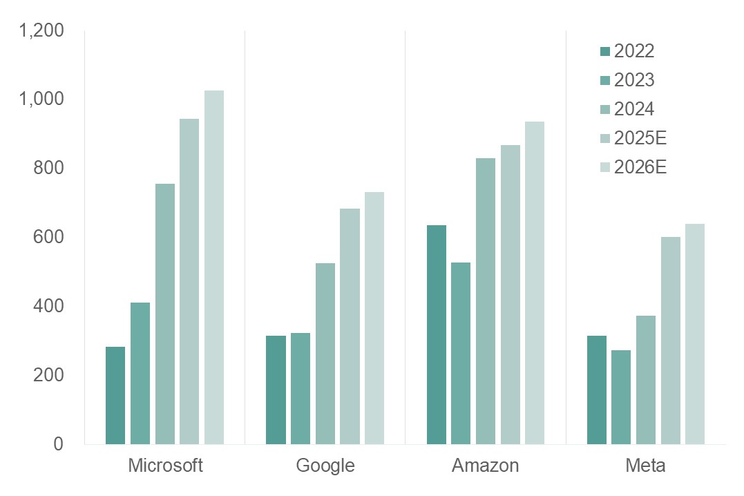 ▲ 主要CSP廠資本支出及彭博綜合分析師預估(億美元)