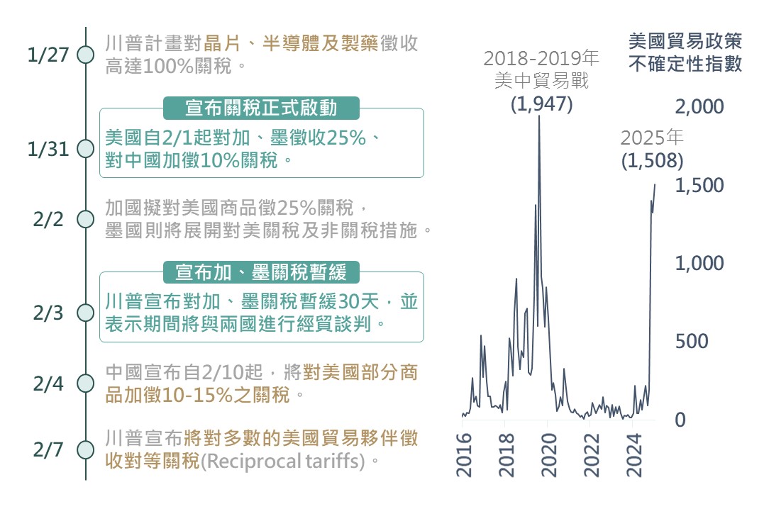 ▲ 美國關稅政策相關發展動態及美國貿易政策不確定性指數