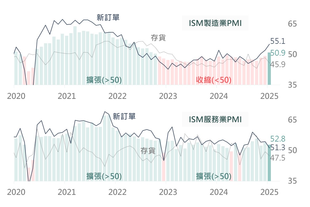 回顧2024年,美國製造業持續收縮,惟服務業穩健擴張提供經濟之韌性基礎,雖近期服務業動能放緩,然其仍處擴張區間,且評估可正面看待製造業歷經收縮週期後之擴張機會。綜合評估,市場雖將持續受關稅因素干擾,然在經濟展望仍正向下,料美股指數下方亦具支撐。