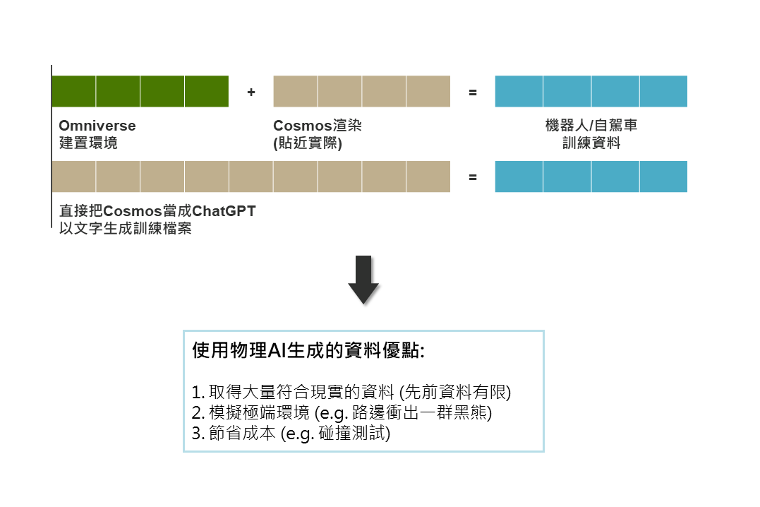 ▲ 輝達Omniverse平台及Cosmos模型運作範例
