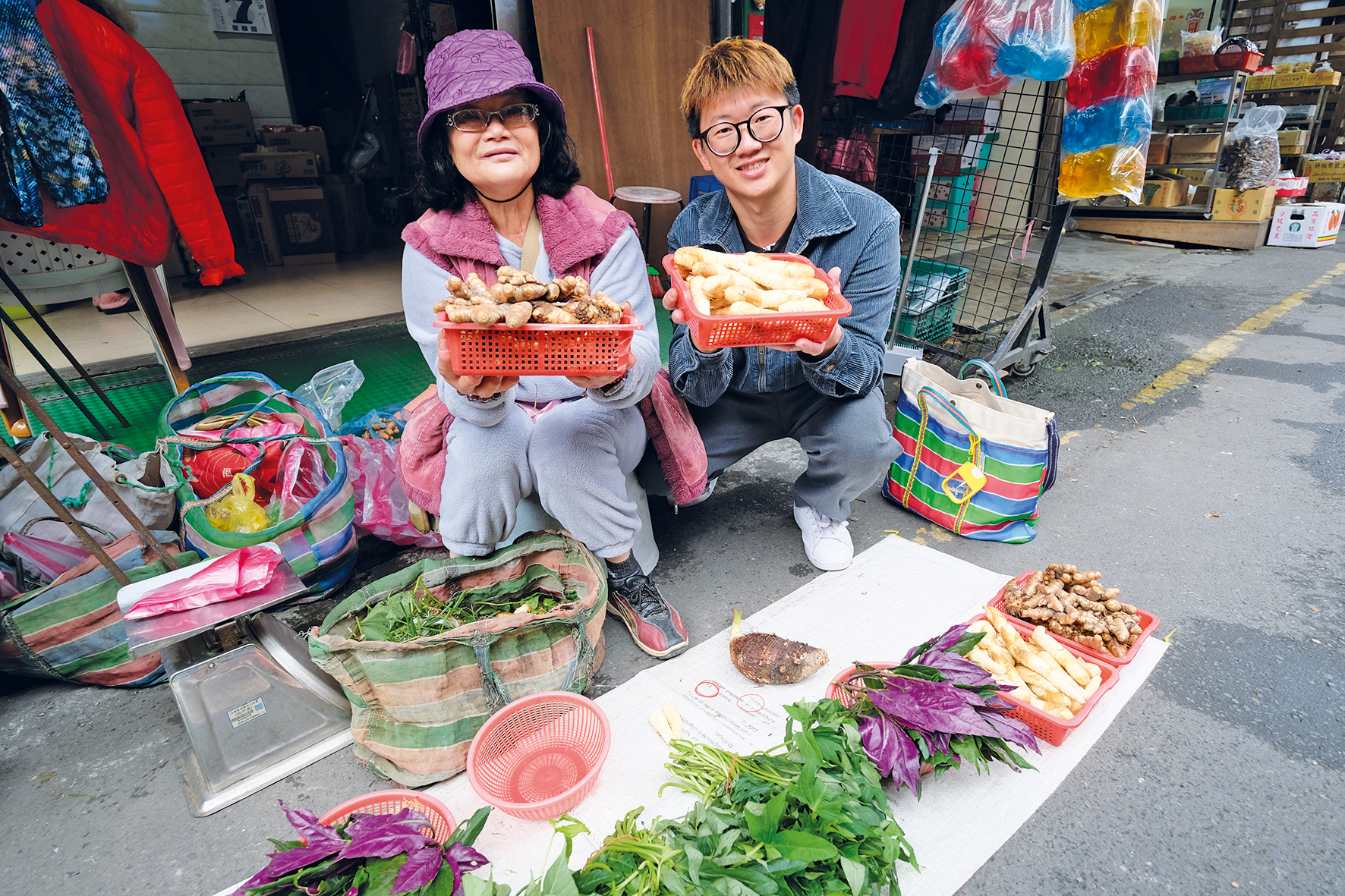 跟著少年阿公走入南、北館市場展開探險,只見他蹲在蔬菜攤邊幫忙菜攤阿姨將客人買的菜裝袋,還邊解說季節時令。透過他的講解與詼諧風趣的互動,傳統菜市場每一攤的故事與歷史瞬間活了起來,「知道怎麼分辨小農與批發攤販嗎?小農擺攤通常就在路邊鋪一小塊布、坐小板凳。他們的產量少,但永遠是最『到時』的新鮮蔬果。」