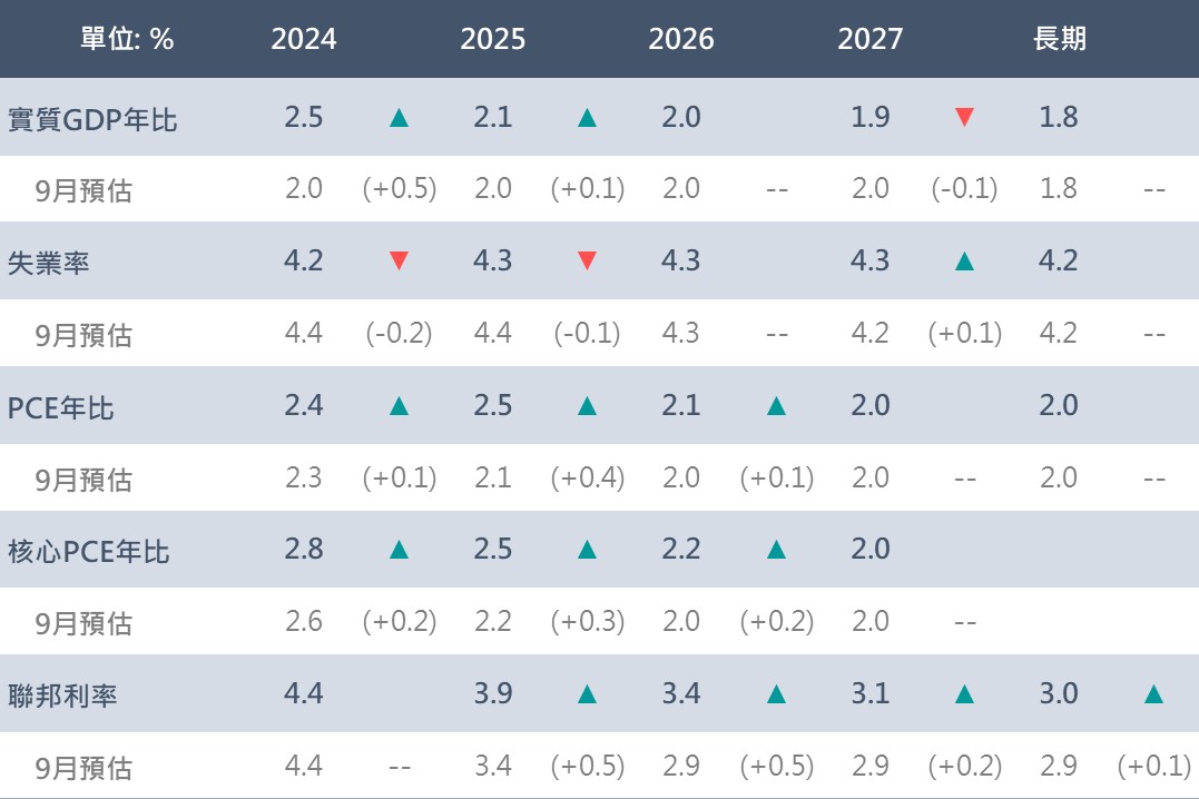 ▲ Fed經濟預估摘要(SEP)及其上下修變動