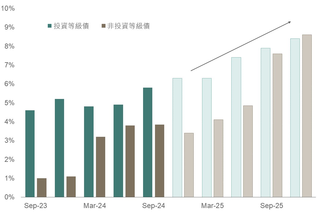 ▲ 投等與非投等債各季EBITDA年增率預估