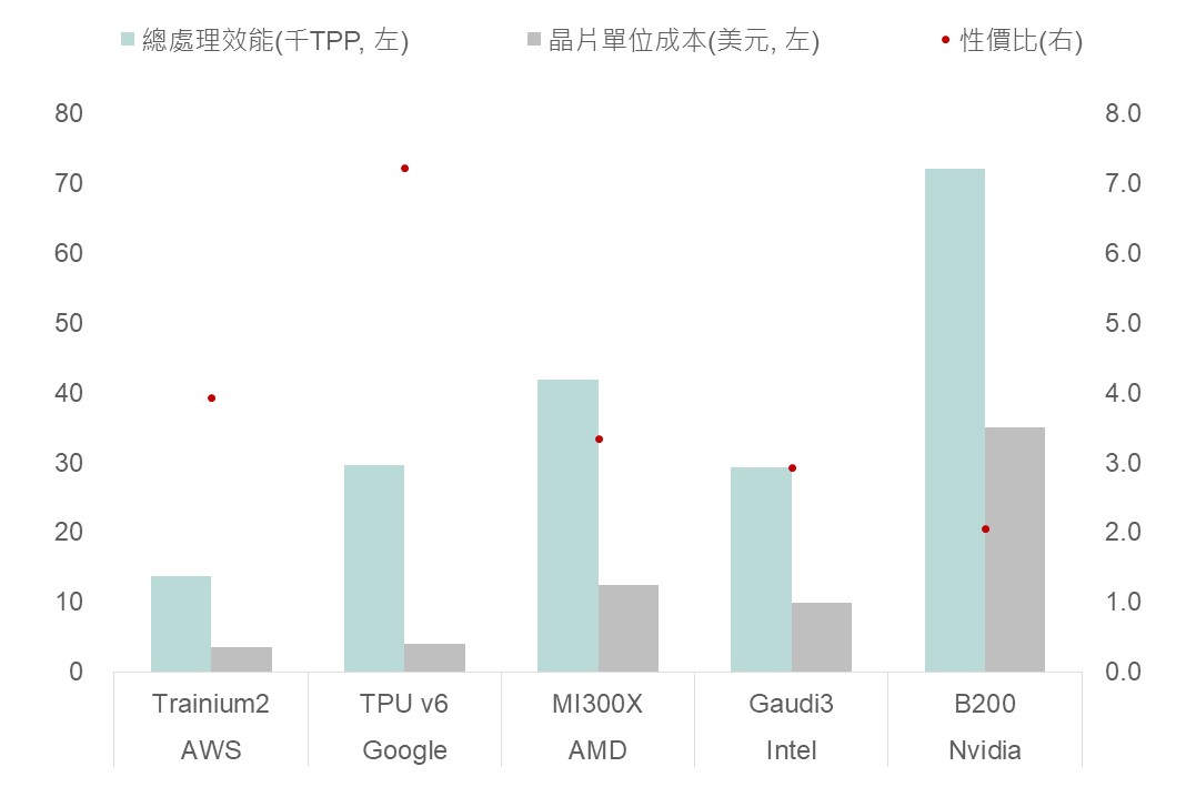 ▲ AI推論所需之處理效能及晶片成本