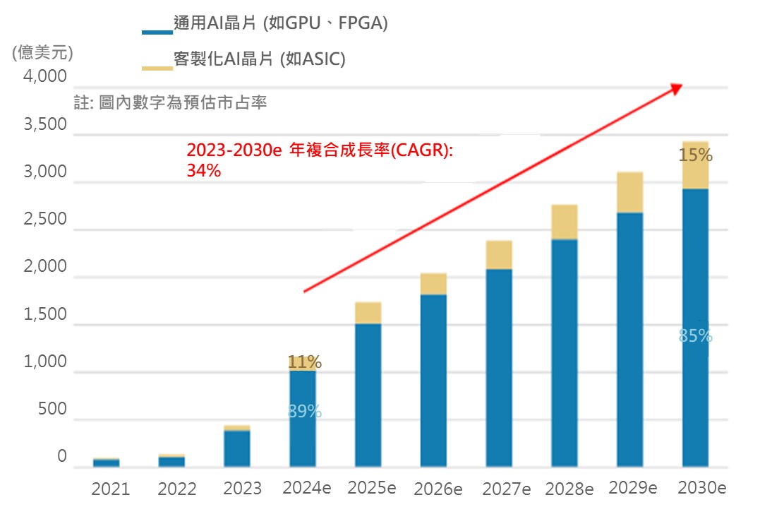 ▲ 通用AI及客製化AI(ASIC)預估市場規模