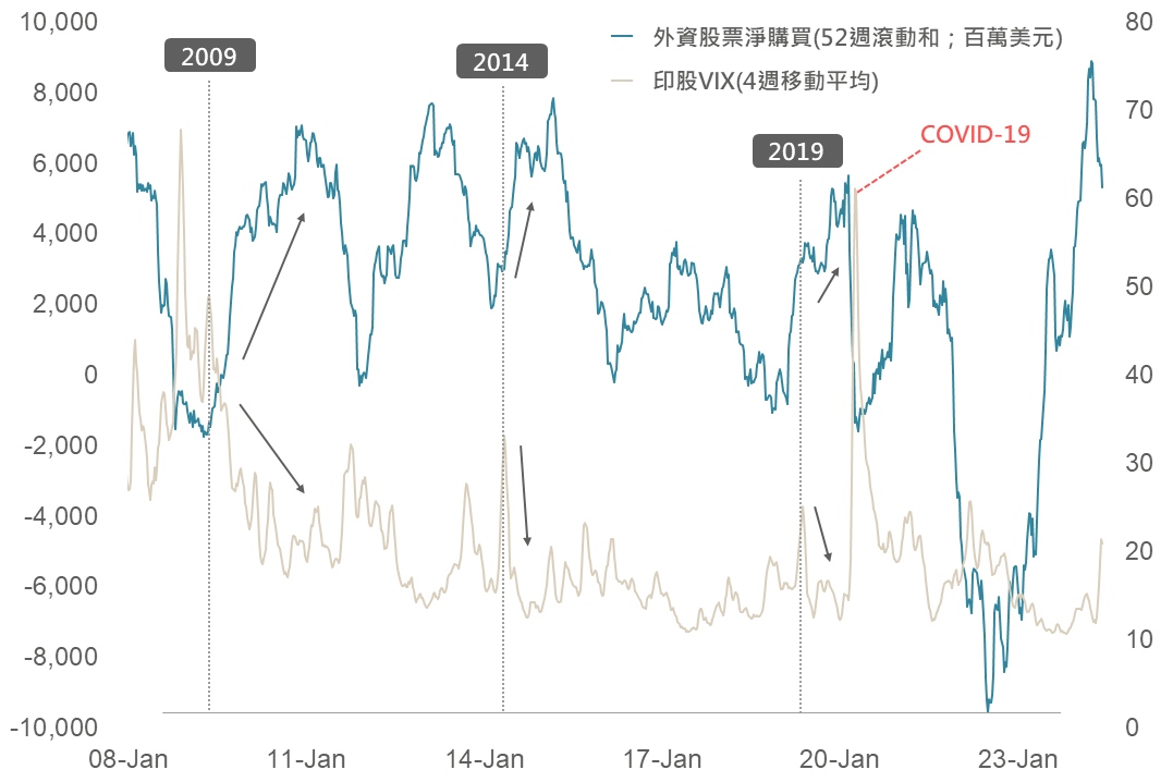 ▲ 前3屆大選印股VIX及外資股票淨購買