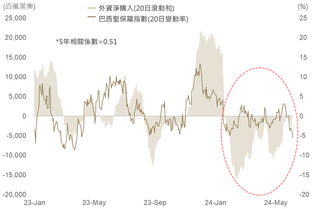 ▲ 外資股票淨購買量 vs. 聖保羅指數變動率