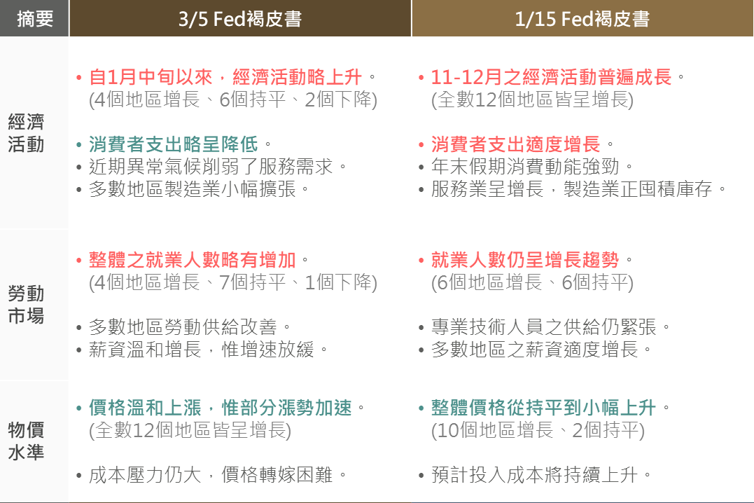 近期市場高度關注美國經濟狀況,然綜觀2月非農就業及ISM之PMI等數據,評估美國經濟雖初呈放緩跡象,惟尚不至進入衰退週期,觀察Fed褐皮書調查結果亦顯示相同結論,多數地區經濟活動仍持平或增長,整體就業狀況亦仍保持穩定,料仍可正面看待下半年復甦機會。