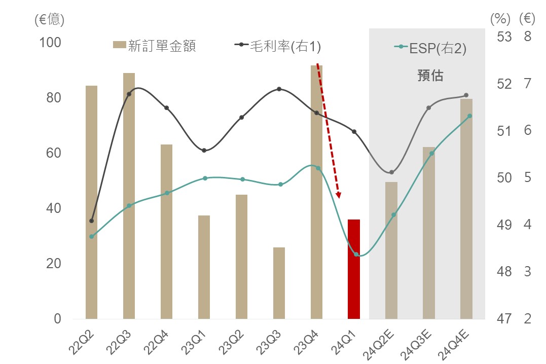 ▲ 艾司摩爾新訂單/毛利率/ESP預估