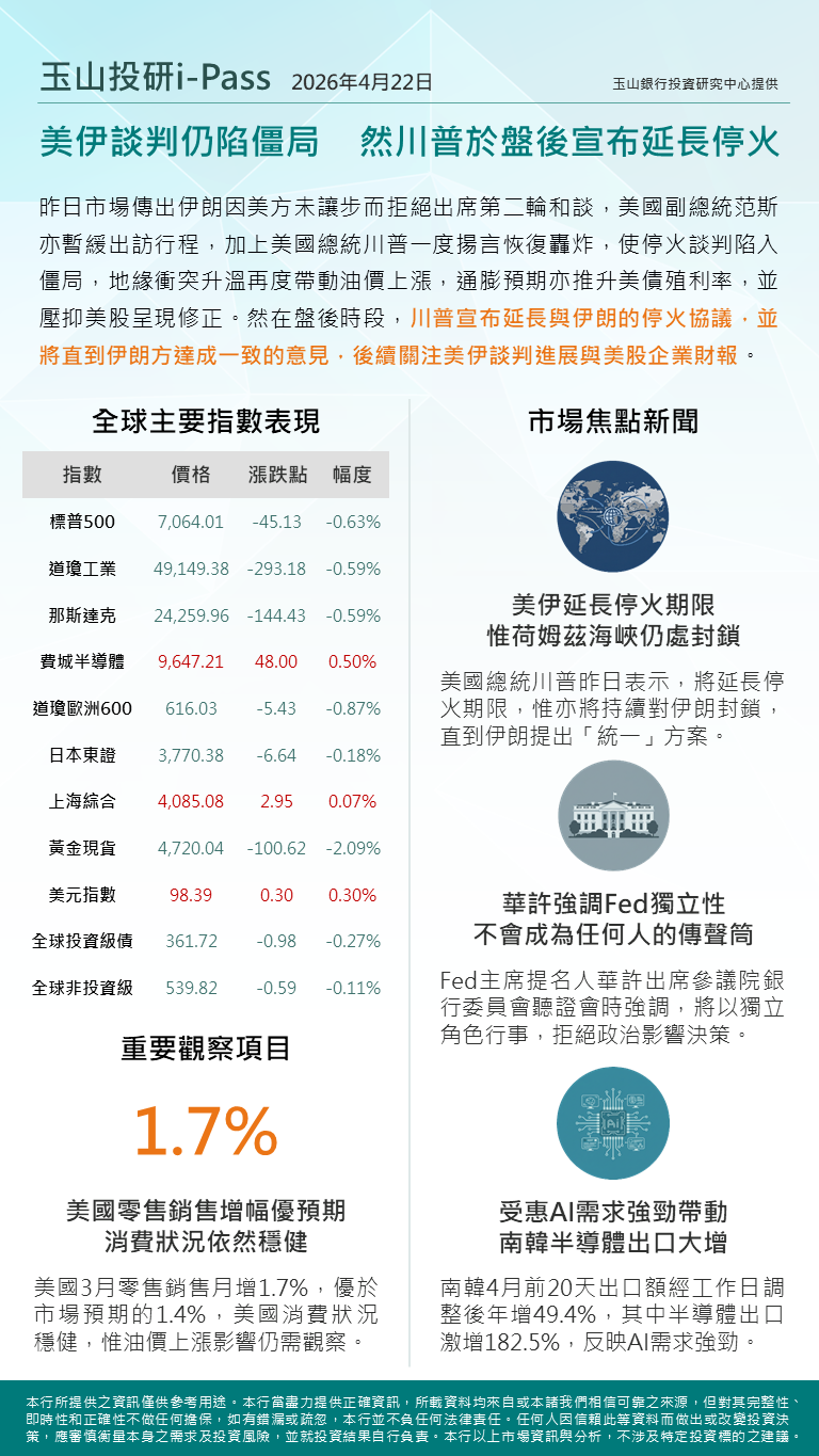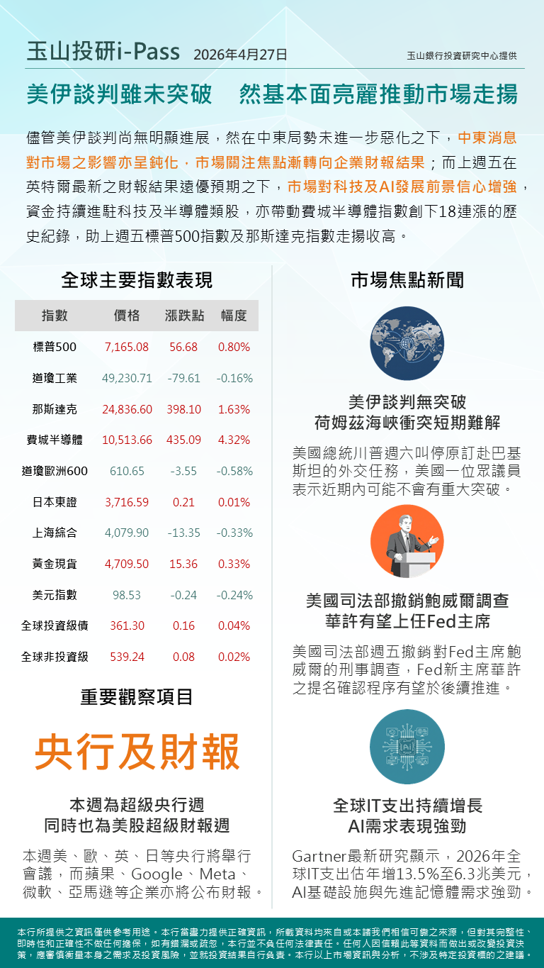玉山銀行財富管理結合投資研究中心提供專業市場分析,助您掌握全球投資趨勢。