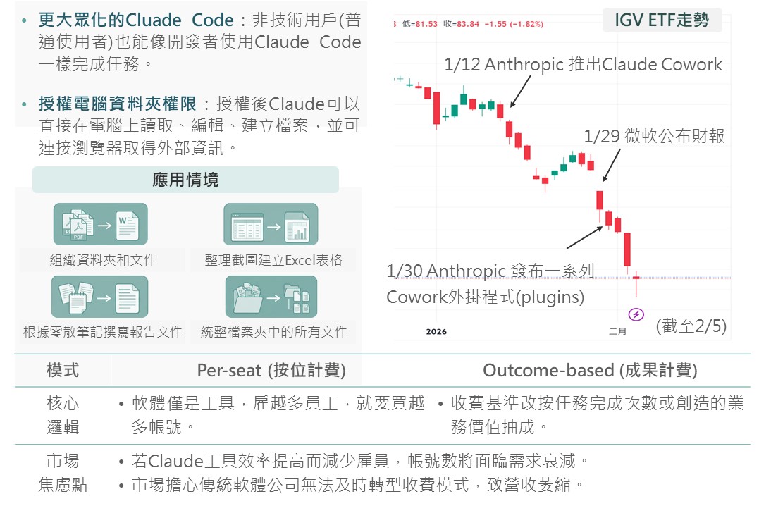 ▲Claude Cowork簡介及對軟體產業收費影響