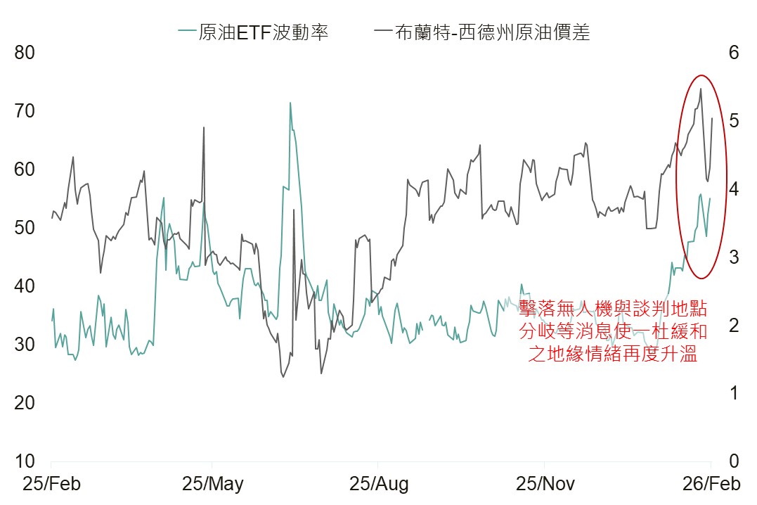 ▲近期油價走勢與波動率