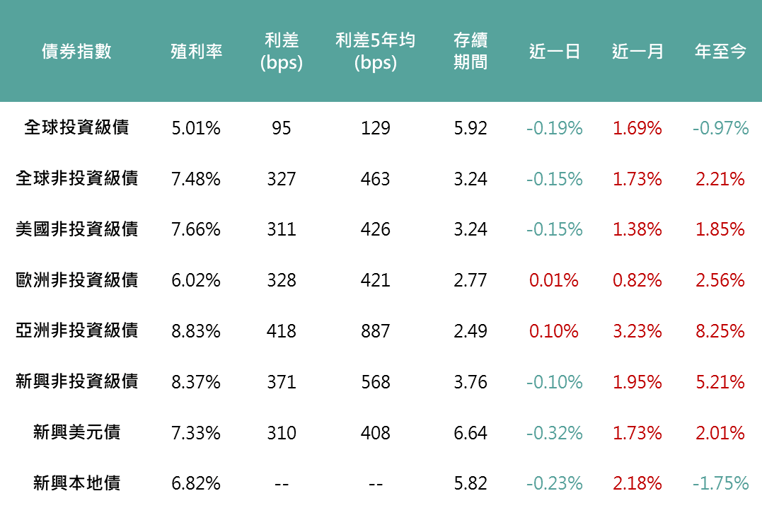 ▲ 各債券指數相關資訊