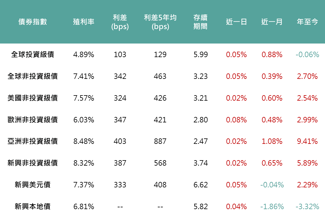 ▲各債券指數相關資訊