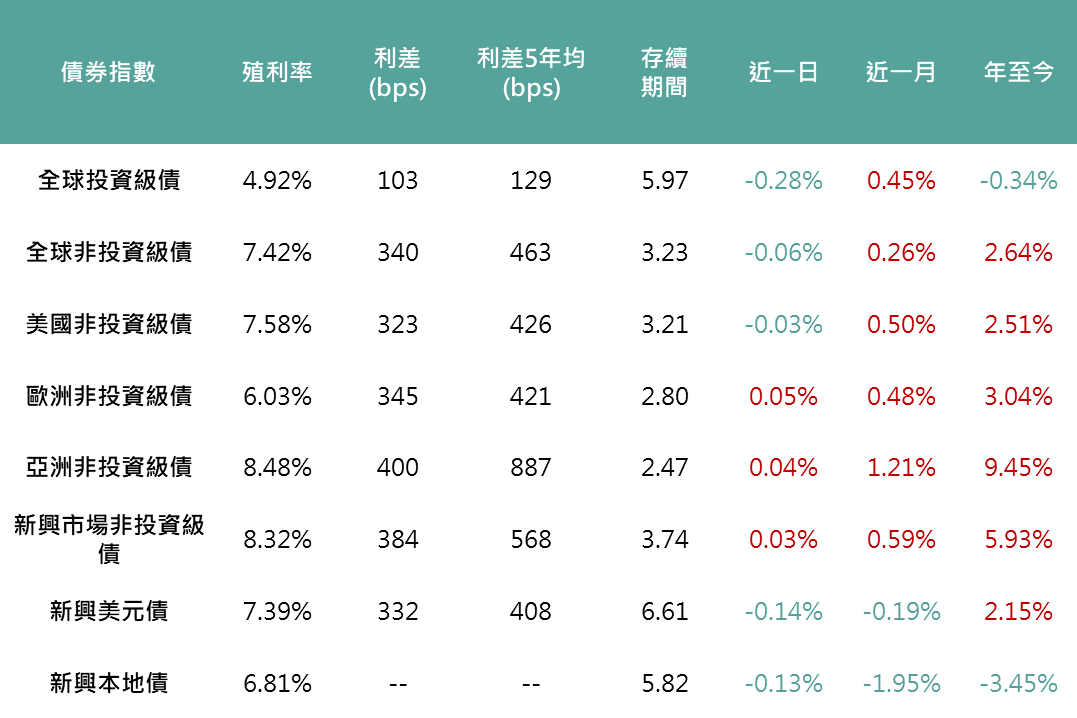▲各債券指數相關資訊