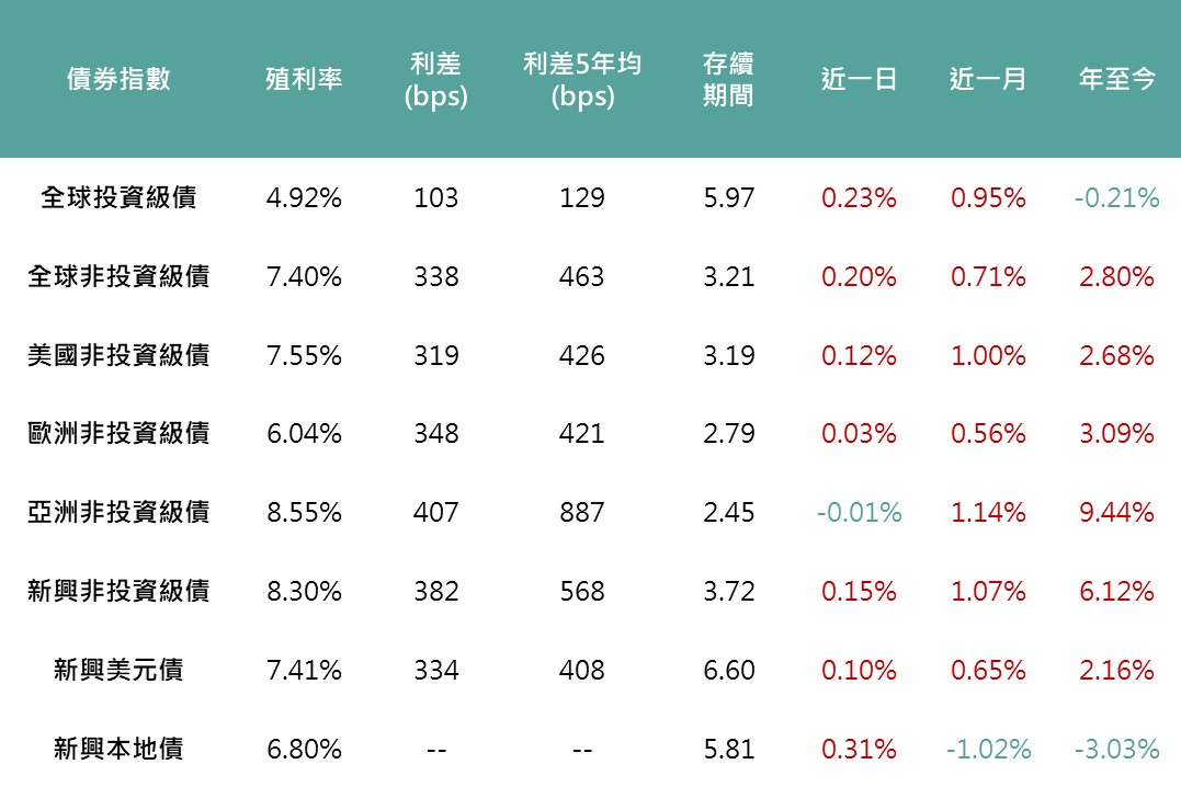 ▲各債券指數相關資訊