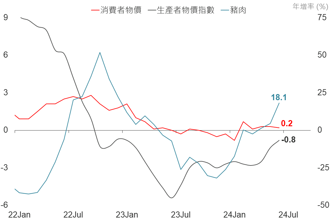 中國通縮風險揮之不去,儘管豬肉價格回彈年增率達18.1%,然而扣除豬肉貢獻後,中國仍陷於通縮壓力之下;此外,PPI細項中上游項目呈現回升,下游價格持續承壓,亦暗示終端需求疲軟,導致昨日陸股呈現開高走低。
