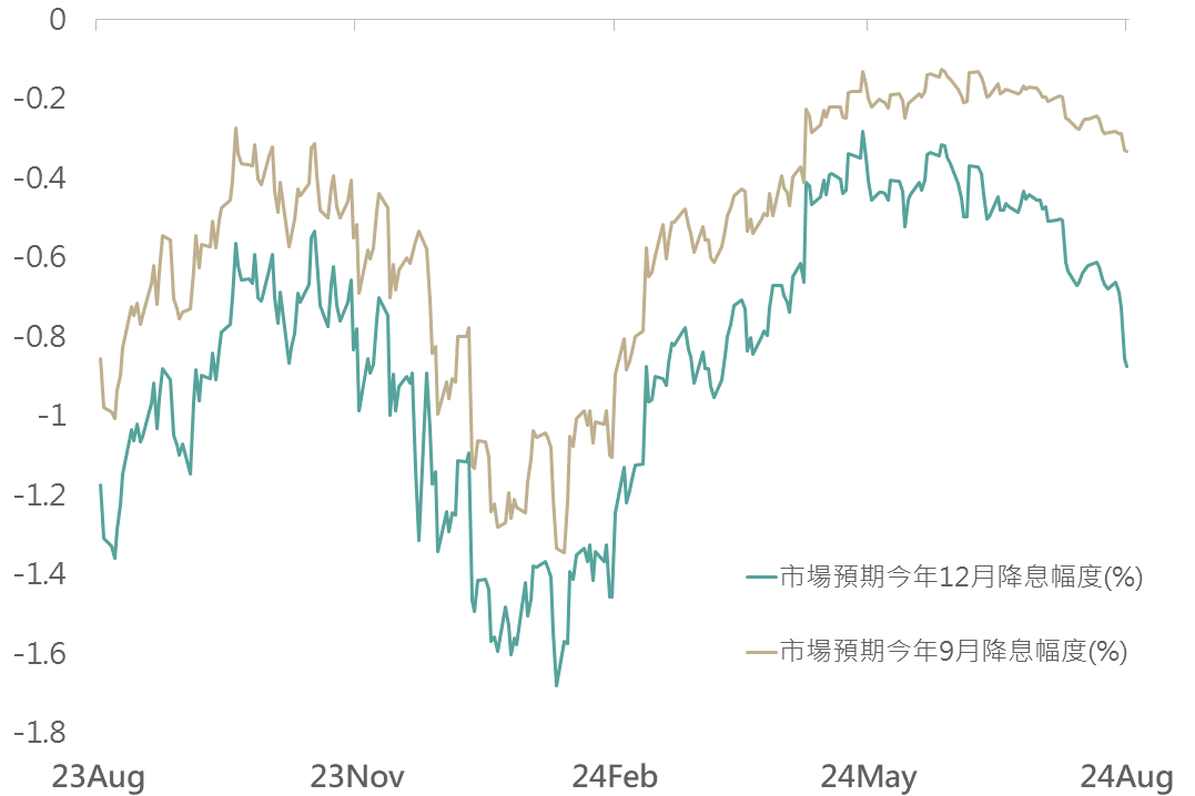 ▲市場對Fed年內降息之幅度預估