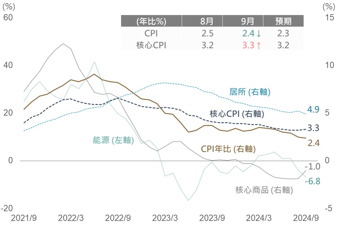 9月CPI年增從2.5%降至2.4%,但高於市場預期的2.3%。