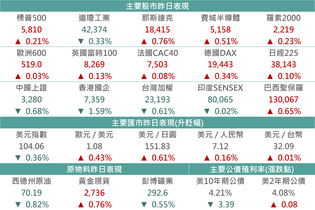 美國經濟表現強韌對市場形成支撐效果,疊加昨日特斯拉公布之最新財報結果亦優於市場預期,推動標普500指數終場收高。