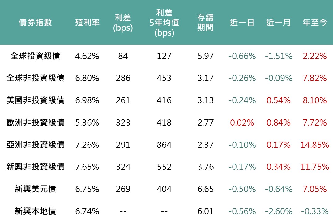 ▲債券指數相關資訊
