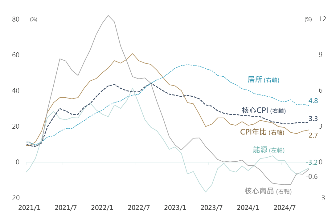 美國11月CPI年比自2.6%升至2.7%,核心CPI年比則仍維持於3.3%水準,