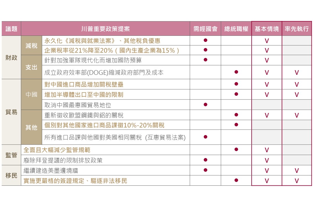 ▲ 川普重要政策提案及實施基本情境