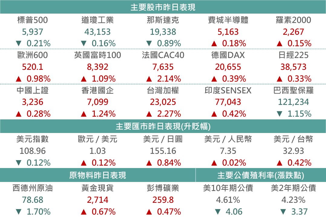美國銀行公布上季財報營收年增15%至255億美元、獲利67億美元較2023年同期31億美元有翻倍成長,皆優於市場預期。不僅在淨息收益自前年Q3以來首次出現年成長,投行收入亦具有強勁成長。美銀CEO表示各項業務均有所成長,並給出對今年Q1優於市場預測上緣的淨息收財測。雖財報公布後美銀股價一度上漲2%,惟市場出現獲利了結賣壓,最終收盤下跌0.98%。