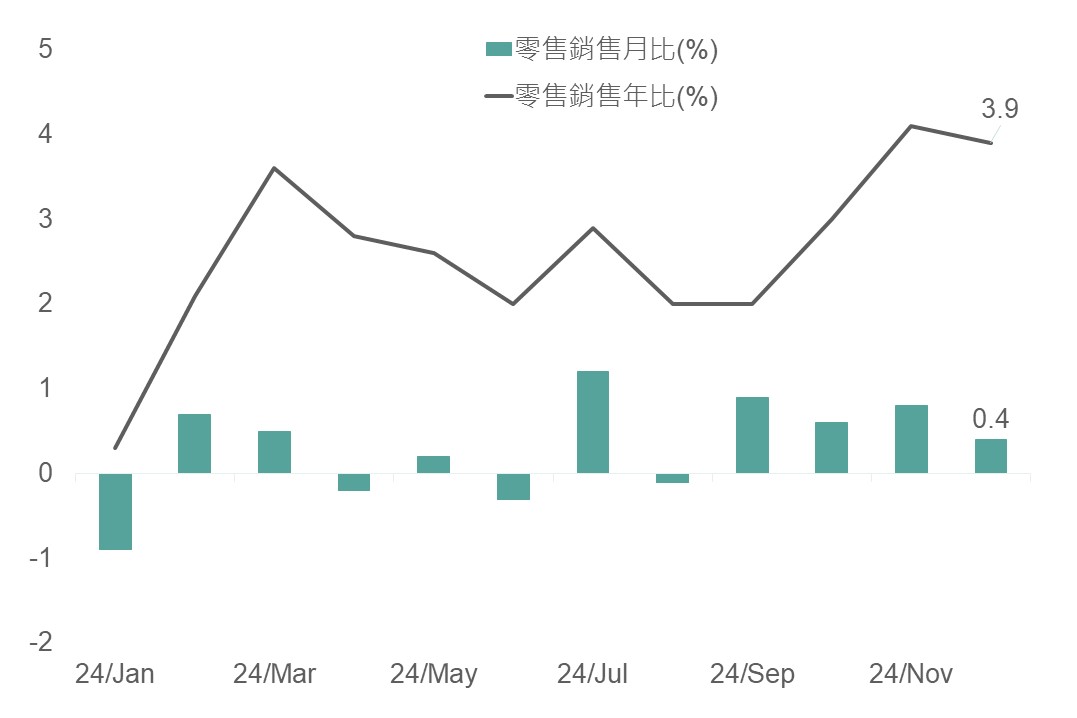 昨日美國公布12月零售銷售月比為0.4%,低於市場預期的0.6%,不含汽車及汽油之核心零售銷售月比為0.3%,亦低於市場預期的0.4%;整體而言,美國於年末之消費表現仍屬強健,其中13項細項中有 10項呈現增長。