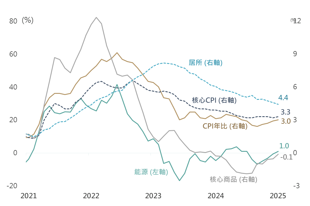 美國公布1月CPI年比自前月的2.9%升至3.0%,並高於市場預期的2.9%,核心CPI年比亦自3.2%升至3.3%,同樣高於市場預期的3.1%;儘管居所項年比仍延續下行趨勢不變,惟能源項及核心商品之負貢獻續減少,能源項年比則自-0.5%升至1.0%。若觀察細項月比變動,1月核心商品項(0.3%)受二手車價回升推動,而核心服務(0.5%)漲幅相對較大,主要反映機票、車用保險等費用推升運輸服務(1.8%)。整體而言,儘管1月基期相對墊高,惟CPI年比數據仍呈反彈,促市場對後續通膨回升疑慮再起。