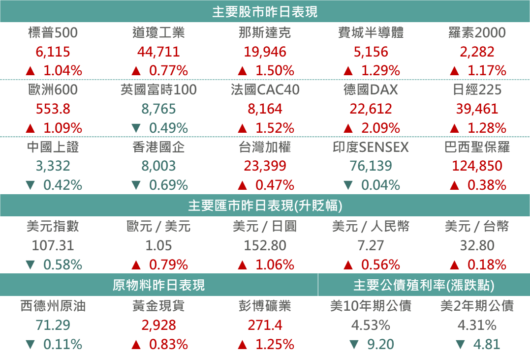 市場正面解讀,促美債殖利率昨日回落,10年期公債殖利率跌9.2bps,收4.53%。受美債殖利率回落激勵,各債種若表現均收漲,全球投資及債指數、美國非投資級債指數、新興美元債指數,分別收漲0.72%、0.22%、0.43%。