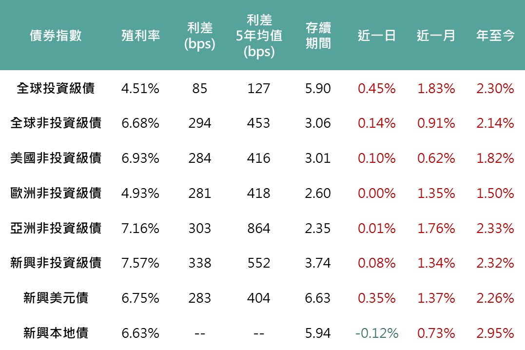 ▲債券指數相關資訊