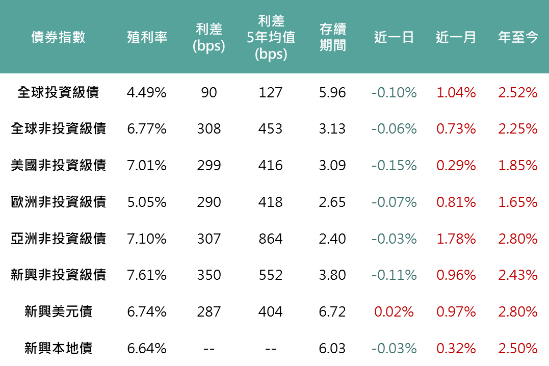 ▲債券指數相關資訊