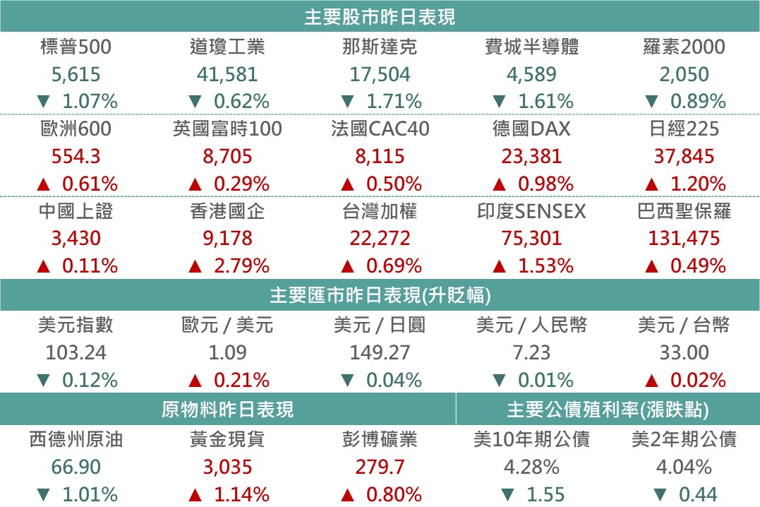 昨日美國總統川普及俄羅斯總統普丁進行通話,雙方就俄烏戰爭達成部分停火協議,普丁同意暫停攻擊烏克蘭能源設施30日,美國則表示後續將啟動全面停火談判。另一方面,昨日輝達執行長黃仁勳於GTC大會表示,AI需求仍難以置信且下一代Blackwell晶片將於下半年出貨;然而,美股在歷經近日之反彈後,