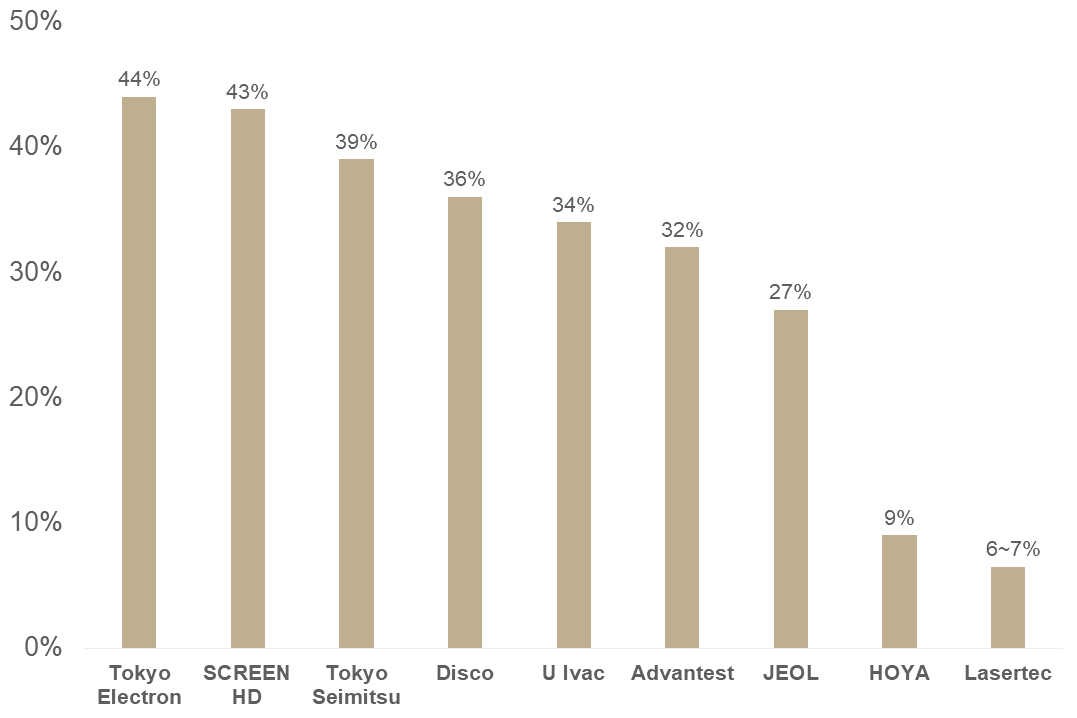 ▲日本晶片製造設備商來自中國營收占比
