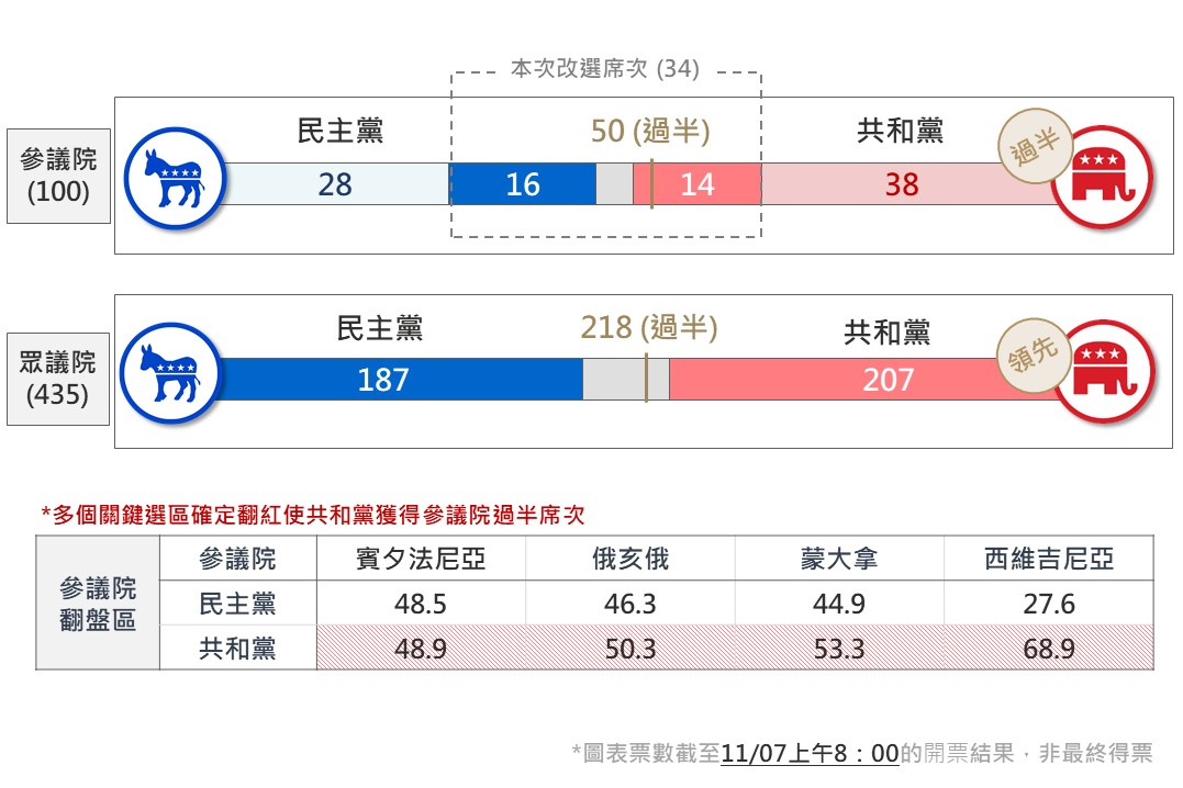 參眾兩院亦由共和黨領先 形成紅色浪潮機會高