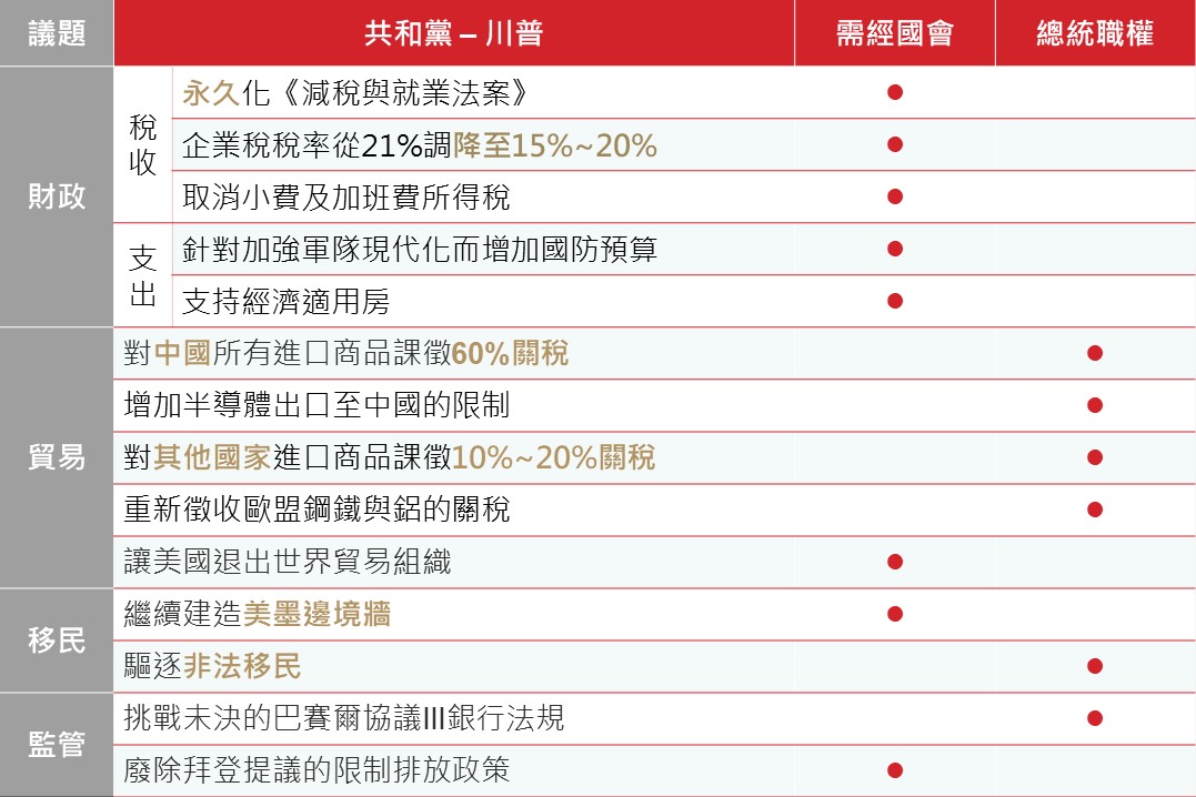 ▲川普-共和黨主導兩院情境下之政策影響分析