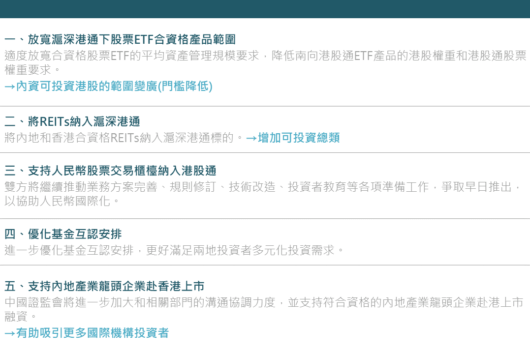 另外在中國方面,自2022年面臨海外融資成本上升、全球市場修正、中美關係緊張及先前中國政府對於產業監管,中國企業在港的IPO募資額已連續2年持續創新低,金額相較於近10年平均已下跌逾8成(2023年僅58.7億美元) ,然而近期中國證監會一系列資本市場改革中,證監會再發佈5項措施,以助香港提升國際金融中心地位,其中包含支持符合條件的內地行業龍頭企業赴香港上市,料有助吸引內外資,並提振港股流動性。